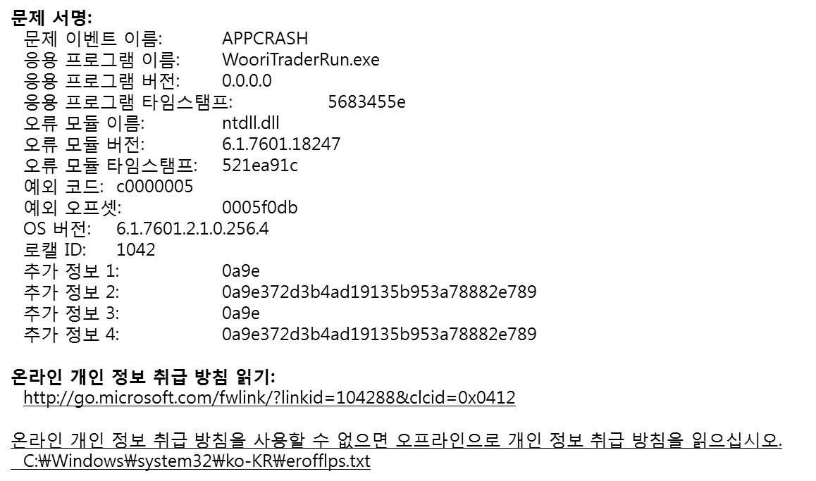프로그램 강제 종료 현상에 대해서는 여러 상황을 살펴봐야 확인 가능하기 때문에