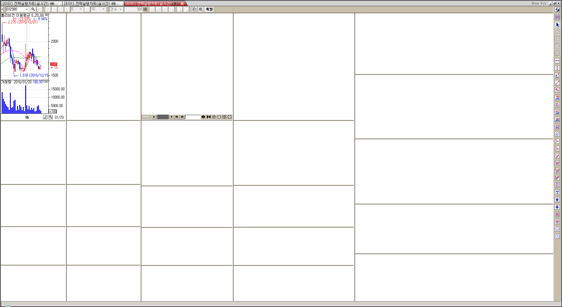 6101 전략실행차트에서 화면분할을 하면 균형있게 분할이 되지 않고 좀 제멋대로의 분할이 그려지는데, 균형잡힌 분할화면이 처음부터 되게 할 수 없나요?