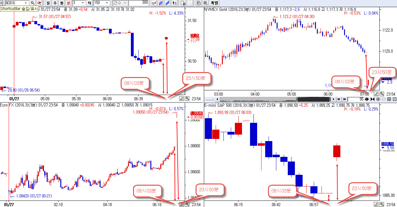 당일 차트를 여는 순간 부터 08시03분 까지의 봉들이 모두 사라지고 안보입니다.