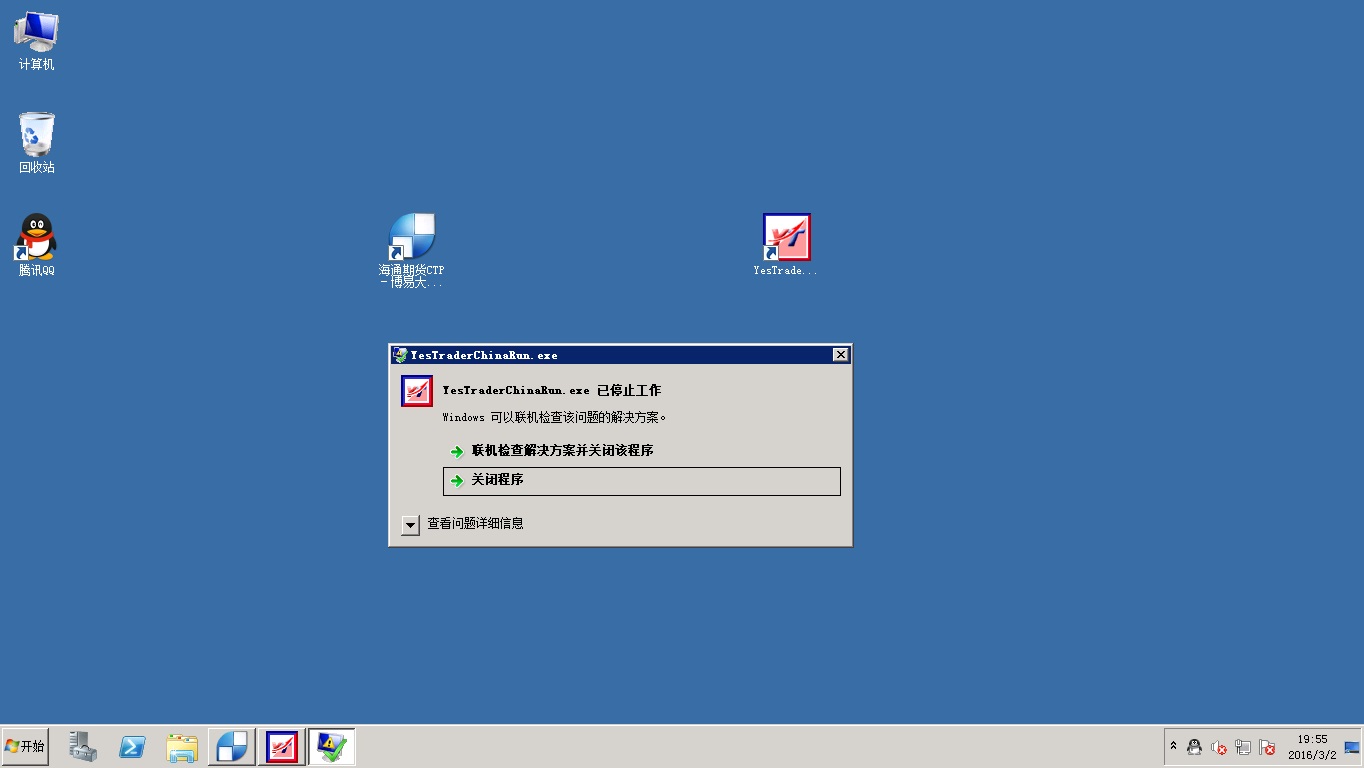 1. 예스트레이더 설치 폴더에 보시면 'YesTraderChinaRun.Log' 파일이 생성되어 있을 것입니다. 비정상 종료시에 만들어지는 로그인데 이 로그파일을 메일로 부탁드리겠습니다.
