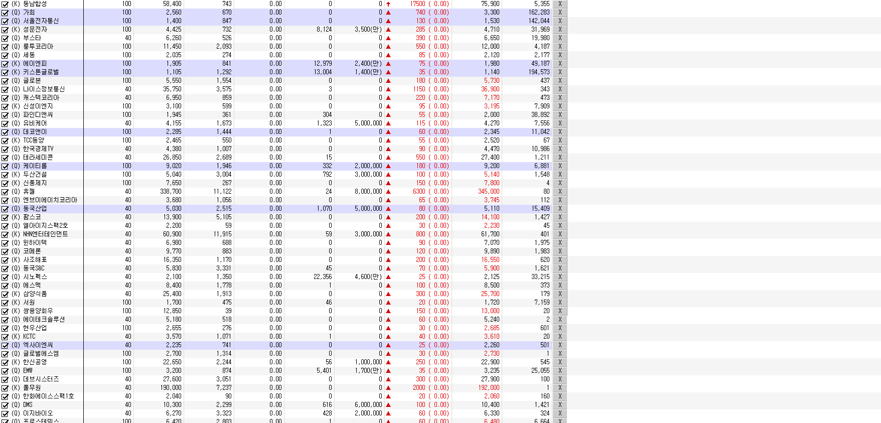 8시 55분에 종목검색을 했는데...예체가가 표시가 안됩니다.(모두 0%로로 나타납니다.)
