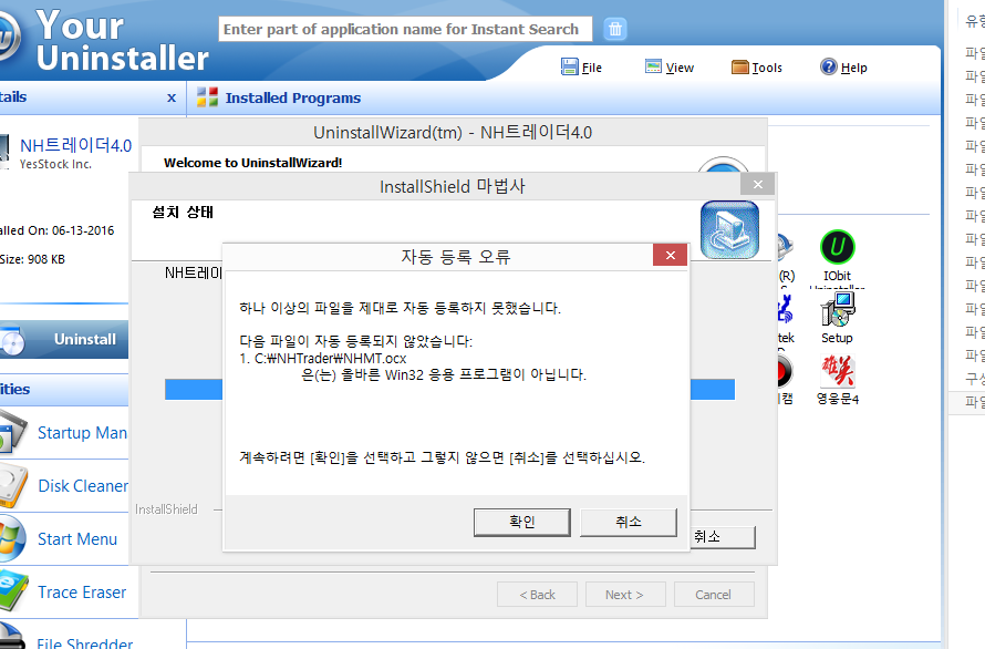 잘 사용하던 nhtrader를 새롭게 깔려고 하니 자꾸 에러가 나오면서 실행이 안됩니다