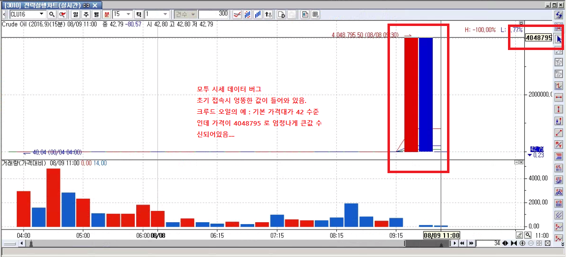 이런 황당할 정도로 이상한 시세 데이터가 있으면 시스템 시험이 불가능해요... ㅠㅠ.