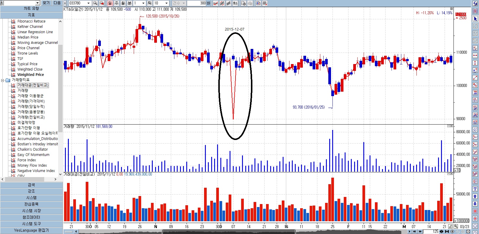 그러나, KT&G의 2015년12월7일의 데이터를 확인해 보면,