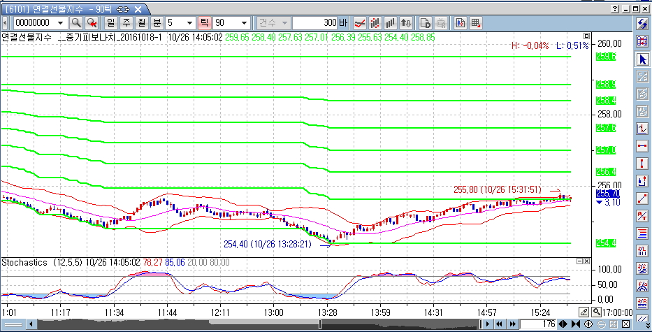 차트에 지표를 설정하면 이미지처럼 지표로설정된 선들을 한화면에 전부 표시해서 캔들이 작게 나오는데요. 지표가 전부 보이지 않더라도 캔들이 정상적으로 보이게 하는 방법좀 알려주세요.
