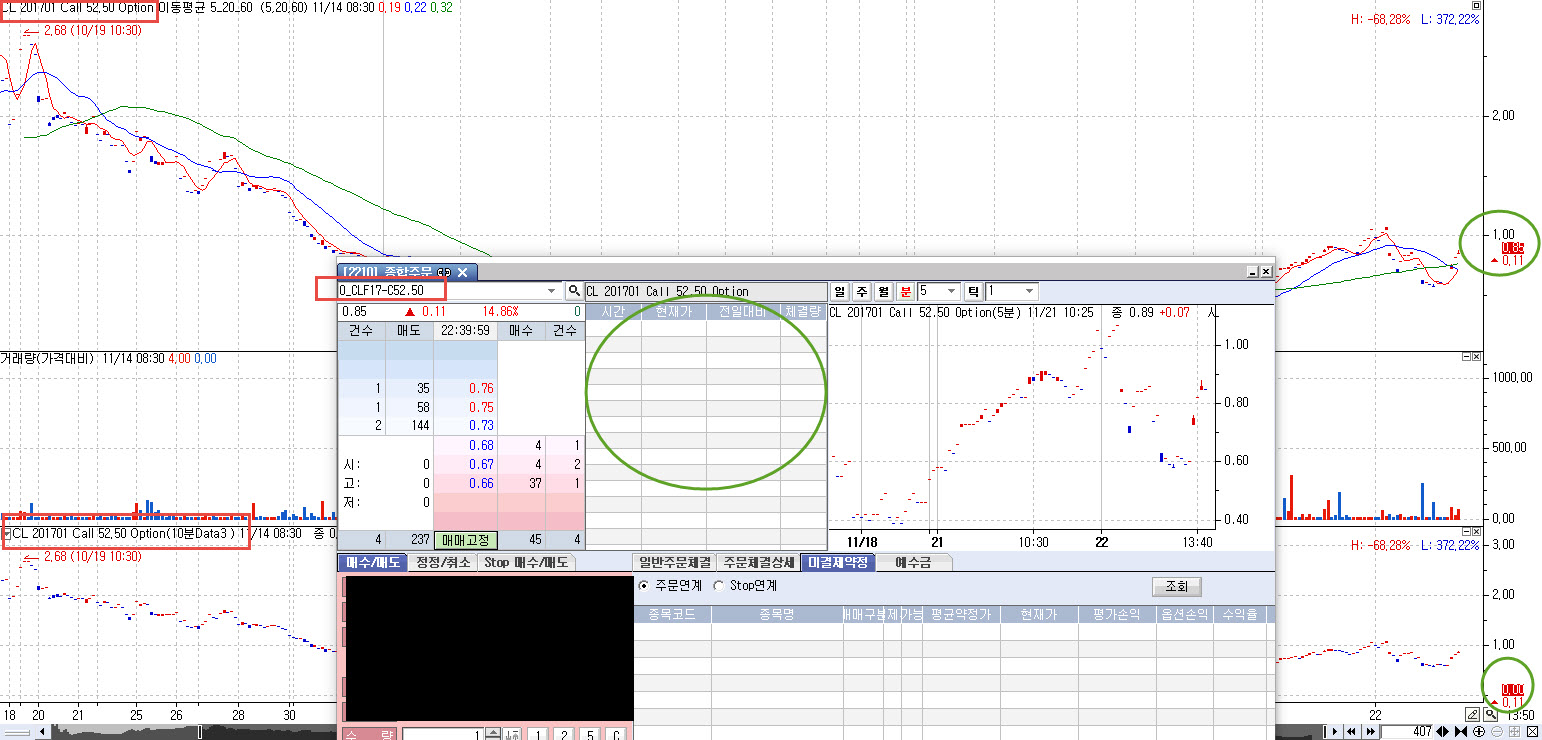 첨부는 10분봉 차트 및 5분봉 종합주문창입니다.