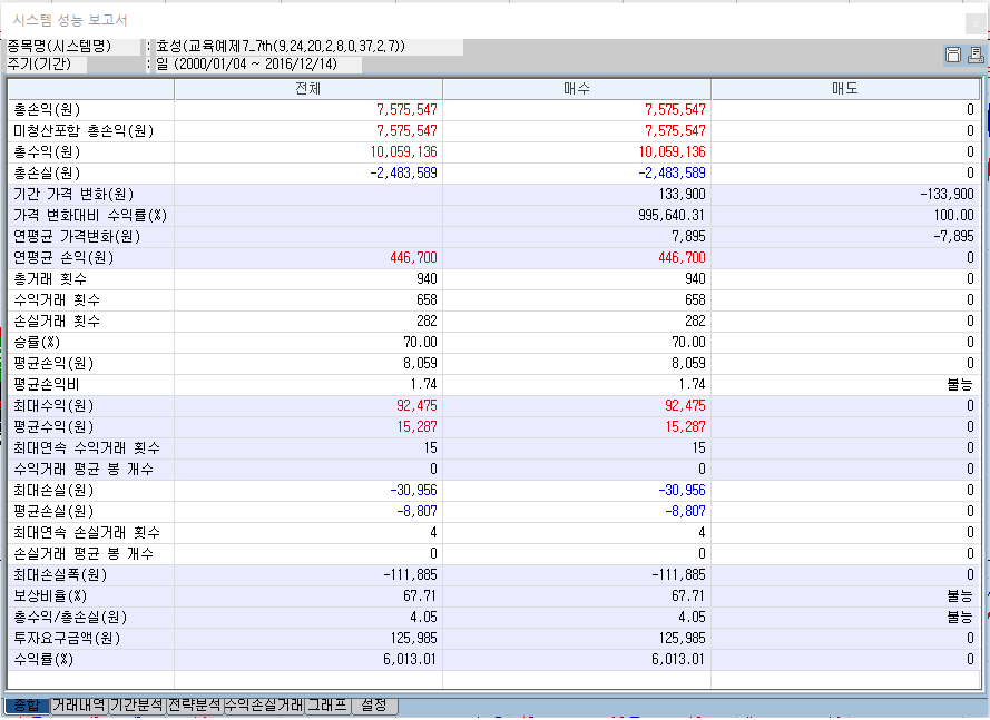 몇일동안 고민해도 안풀려서 문의드립니다. 전략하나를 실행해서 시스템성능보고서를 보면서 backtest 중입니다.