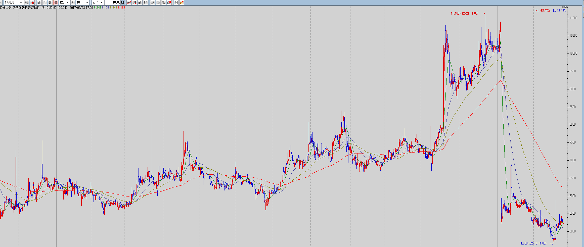 > 제목 : 분차트 왜곡이 되는데 수정주가로 표현하고 싶습니다.