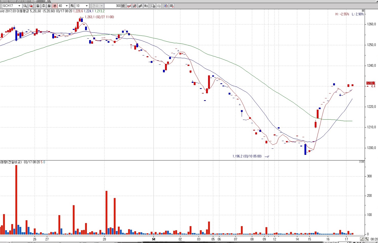 첨부한 파일을 보시면, 금선물 40분 차트인데요,