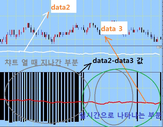 DATA2-DATA3의 값을 표시하는 지표챠트를 만들었는데