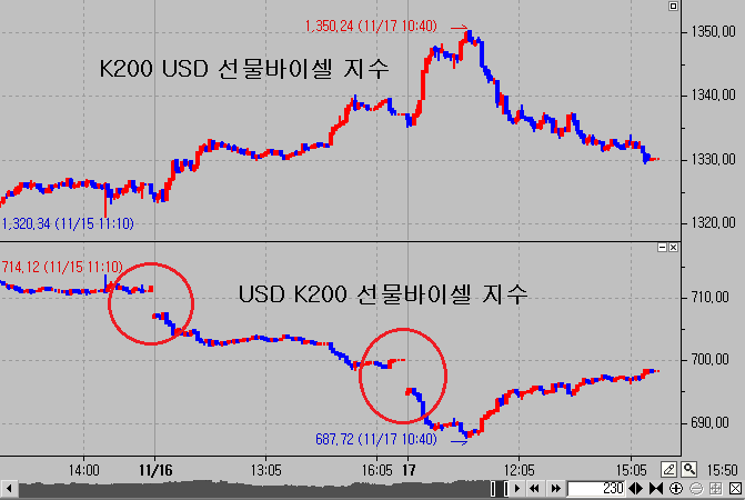 보조차트(data2)는 갭보정이 아직 되지 않고 있습니다.