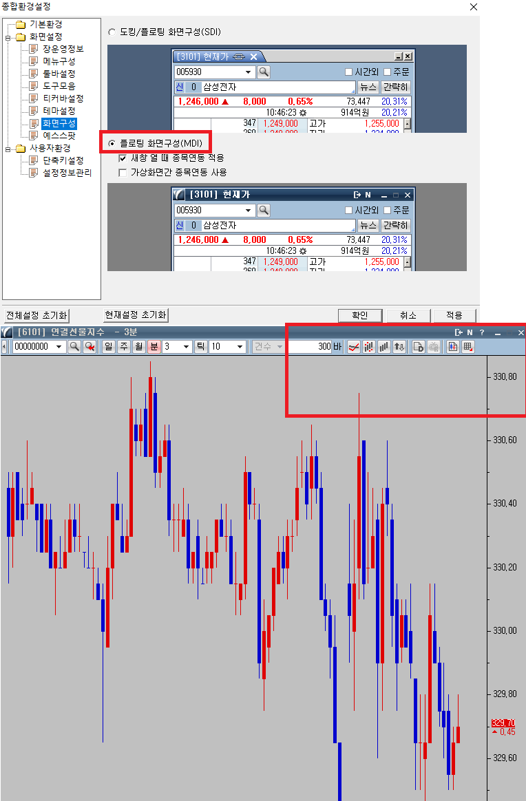 저번 항상위 기능 알려주신대로 해봤으나, MDI 화면구성 적용후 차트에 핀모양이 보이질 않습니다.
