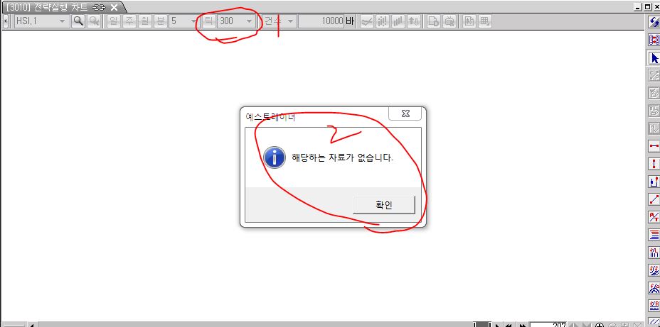 항생300틱차트 사용시 해당종목을 클릭하면 " 해당하는 자료가 없습니다" 라는 메시지와 함께 차트가 실행되지 않습니다,,,, 무엇이 문제인지요???