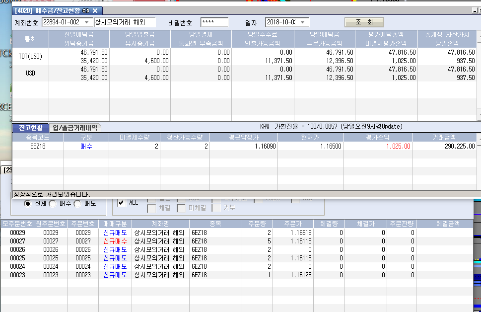 예를 들어, 매수잔고가 있는데 청산 주문도 취소주문도 않되고