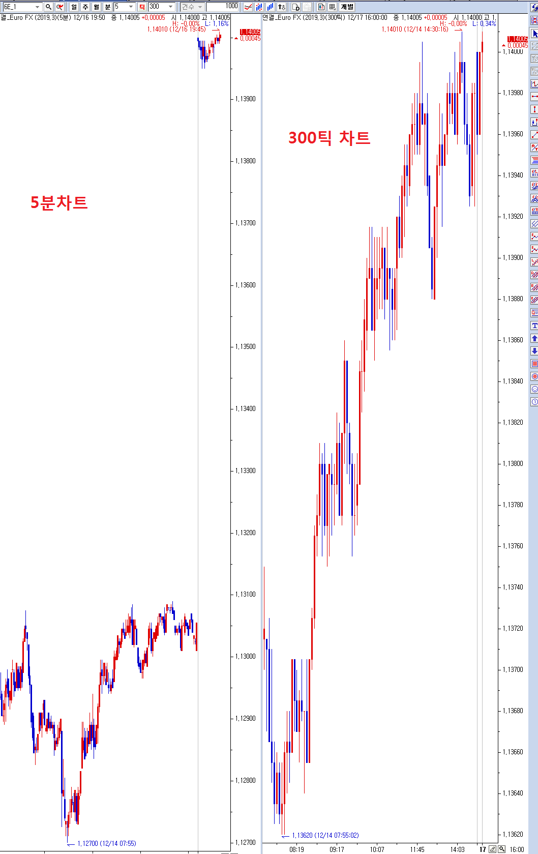> 제목 : 갭상승시 분 틱차트가 다릅니다.