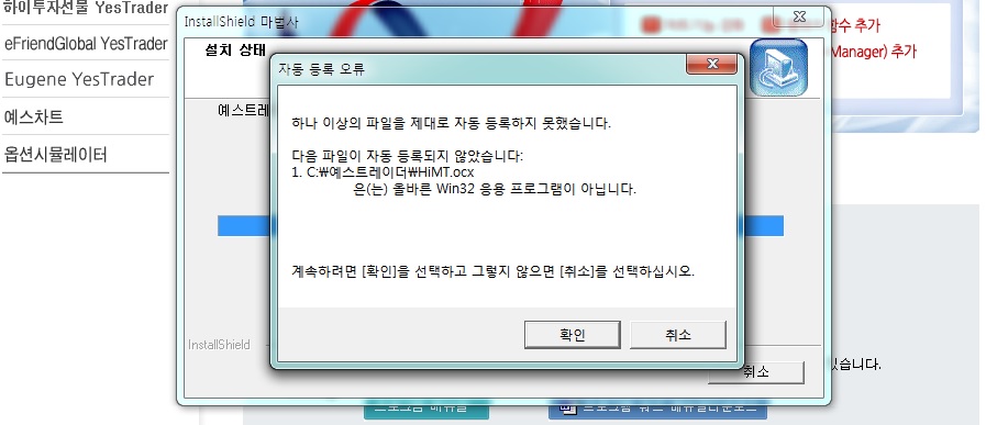 > 제목 : 예스트레이더 설치시 오류