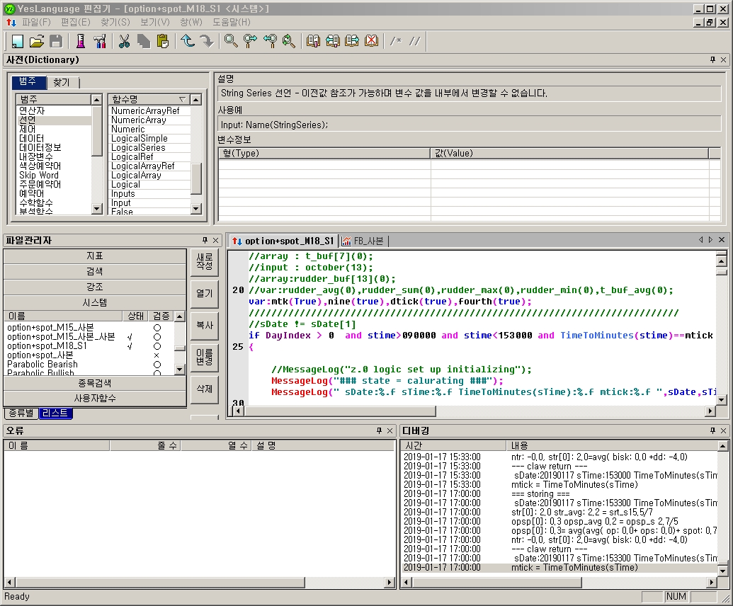 차트에 전략 2개가 적용되어 있어서 모두 디버깅창에 표시되는 상황입니다.