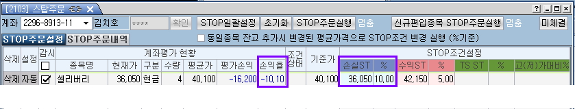 안녕하세요? 예스스탁입니다. 화면 상단에 '스탑주문실행' 버튼을 클릭하시면 옆에 '감시중' 이라는 단어가 빨간색으로 표시됩니다. 이렇게 실행해 놓으셔야 스탑주문이 실행됩니다. 감사합니다. > 티끌 님이 쓴 글입니다. > 제목 : 스탑주문 > 시험삼아 적용중인데 거래가 발생하질 않네요 뭐가 잘못된건가요?