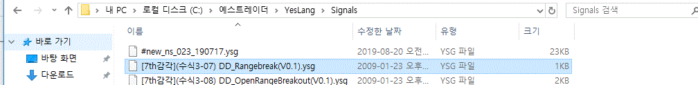 1. 예스트레이더(또는 NH트레이더) > YesLang > signals 폴더에 해당 파일을 저장해 줍니다.