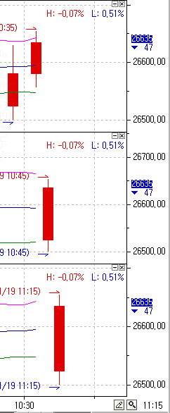 항셍선물지수에 볼린져밴드를 주기(10분, 30분, 60분)를 달리하여 적용하게 되면