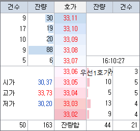 2. 첨부파일을 매도 기준으로 하면 33.07이 우선1호가, 33.06이 상대1호가가 되나요?