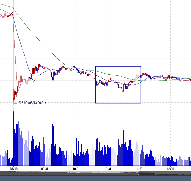 예스트레이더 차트에는 사이드카 발동된 시간에 봉이 추가로 표시 되지 않고 그냥 멈춰 있더라구요...