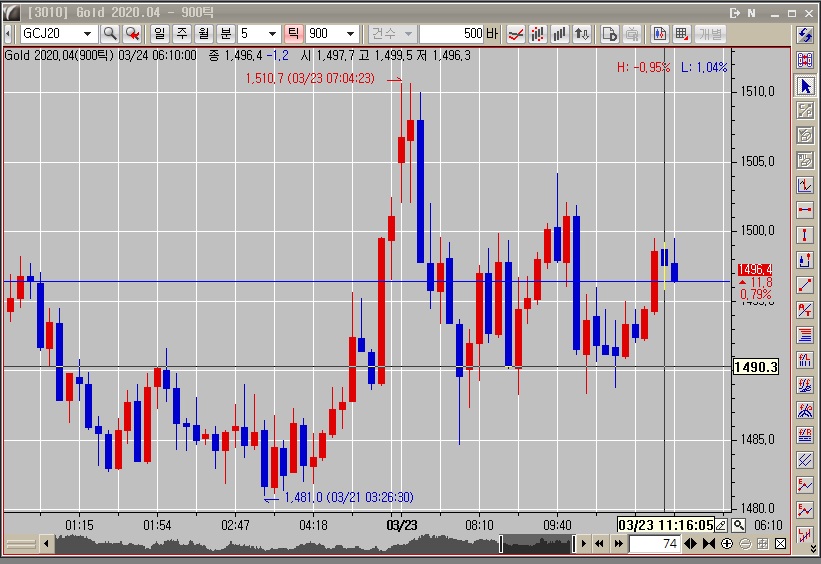 회색바탕 차트를 보면 직전봉이 23일 11시 16분(정상)으로 나오는데