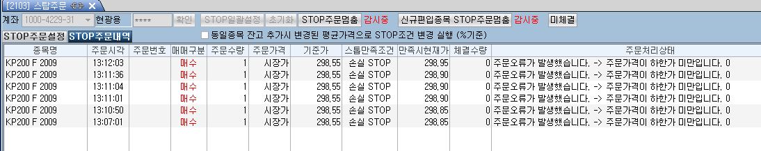 주문가격이 하한가 미만이라고 에러가 나는데...