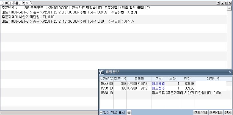 100 이상으로 주문낸 모의투자 수량은 전량체결됩니다.