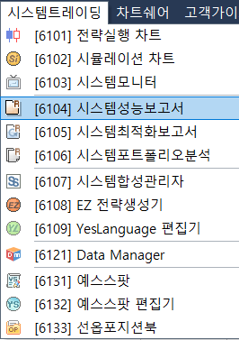 시스템트레이딩 중에 시스템 성능보고서를 누르니 열리지 않습니다.