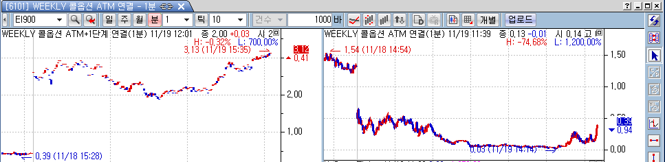 2020.11.20일 ATM+1, ATM 위클리 옵션 데이터가 서로 뒤바뀌어 있습니다. (첨부파일 참조)