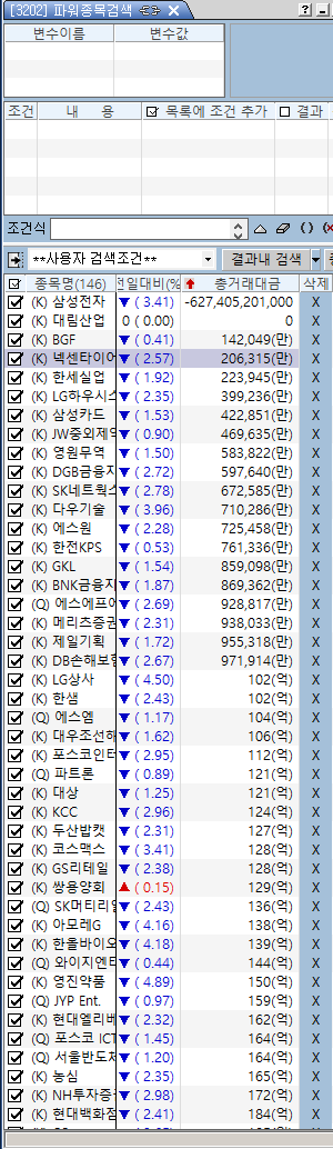 파워종목검색창을 기준으로 종목들을 불러오면 희한하게