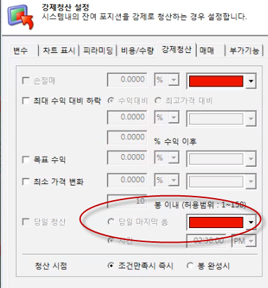 > 제목 : 강제청산 탭 설정 문의