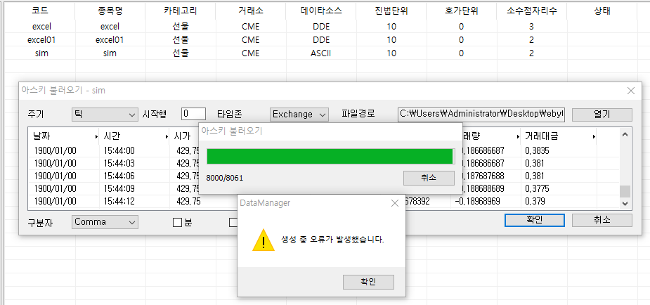 날짜가 1900/01/00 으로 되어있는데, 2000/01/01로 모두 변환하시고 처리하시면 됩니다.