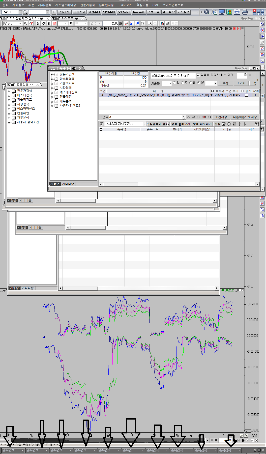 종목 검색 화면이 여러개 열려져 있는 상태 입니다...
