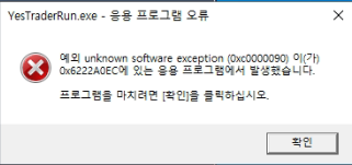 아래와 같이 예스트레이더가 오류가 나서 컴퓨터까지 종료됩니다. ㅜ.ㅜ