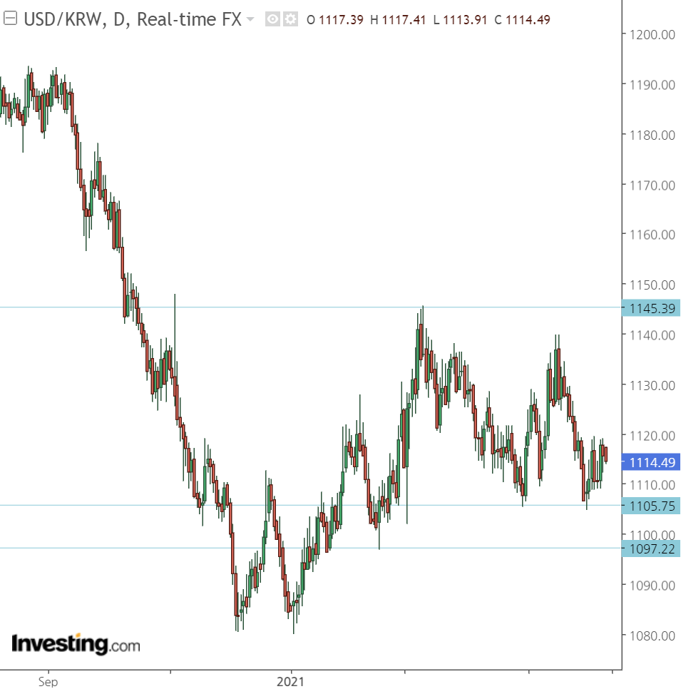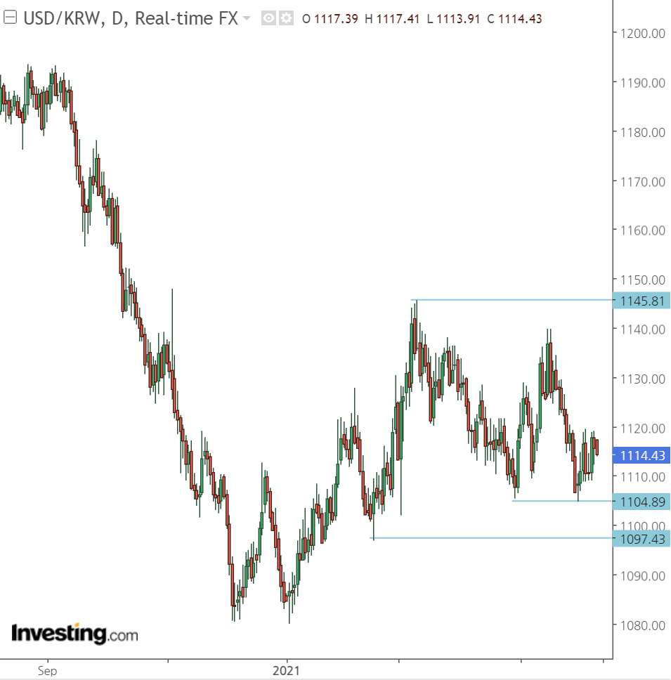 위 이미지는 인베스팅닷컴에서 Horizontal Line 차트 도구를 이용한것이고 예스트레이더에도 수평선으로 있는 기능이지요.