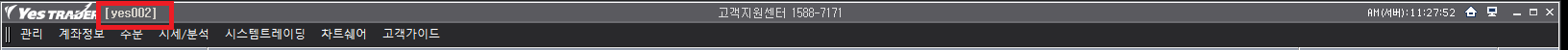 예스트레이더 창 맨 위쪽에 표시되는 [yes001], [yes002]는 무엇인가요?(첨부참조) 추측으로는 중복 로그인 시 PC마다 할당되는 구분 표시인 것 같은데요.