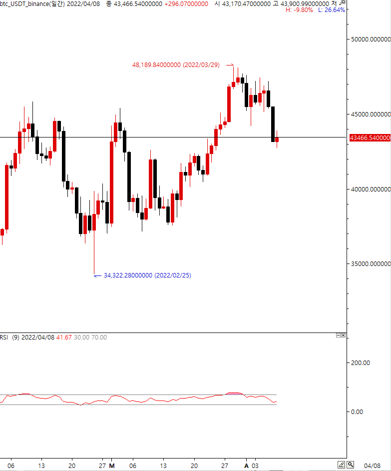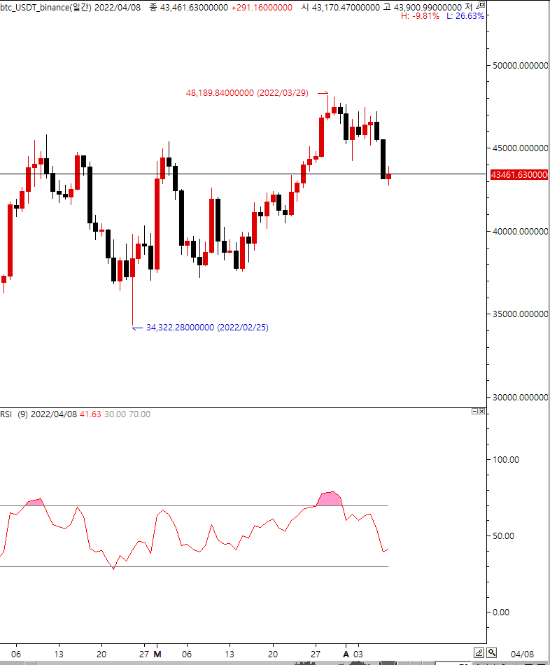 아래 RSI의 공간을 줄이니 RSI 지표가 작아집니다