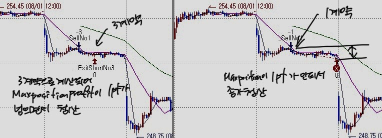 거래수량을 3으로 놓고 실행했을때 MaxPositionProfit이 0.35가 되면 실행되어 버립니다.