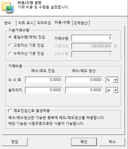 전략당 1계약을 3계약으로 수정하여 주문을 넣으려고 '비용/수량' 부분의