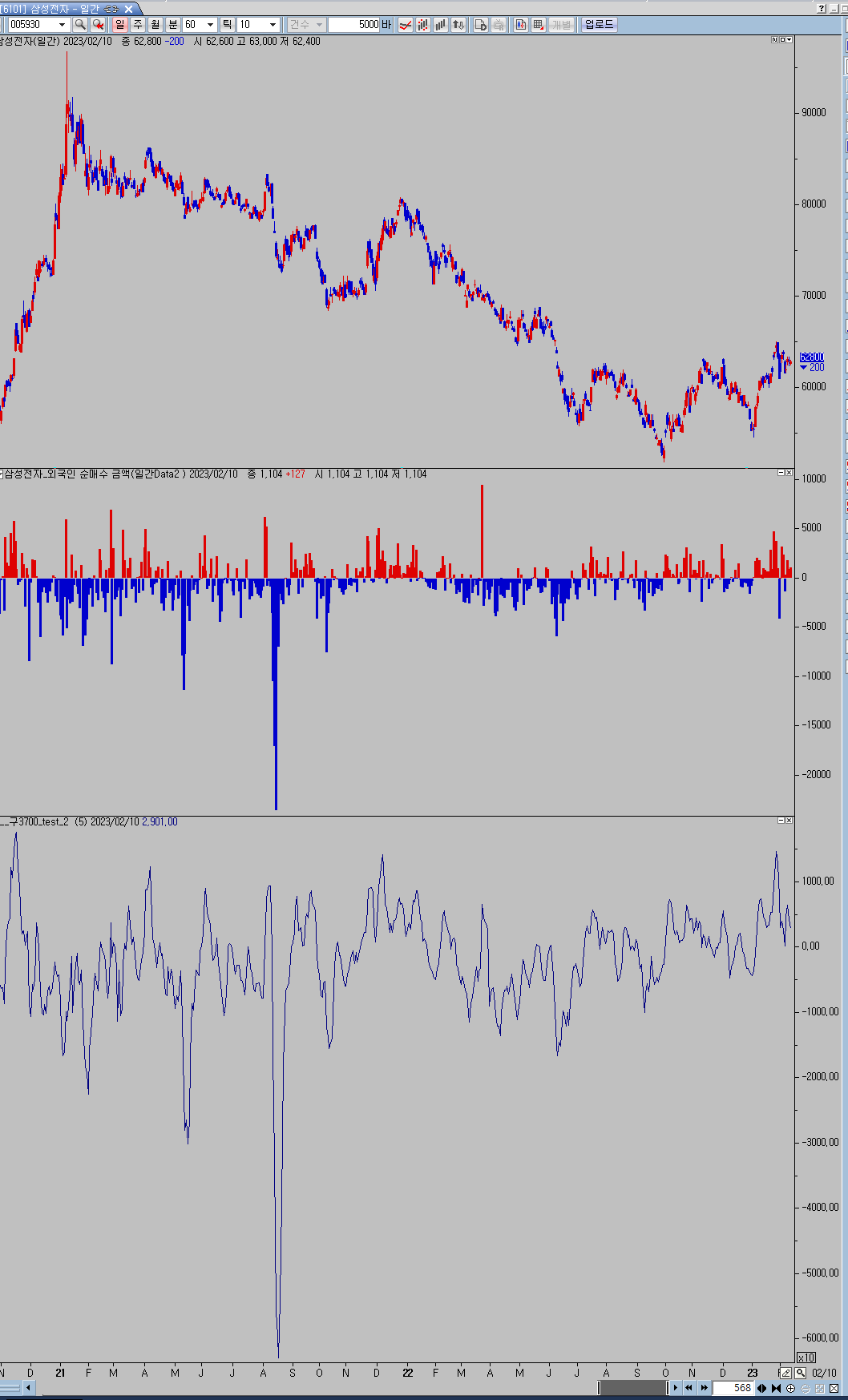 data2에 외국인 순매수 금액을 설정하고 수식을 실행하면 결과가 나타 나지 않습니다.