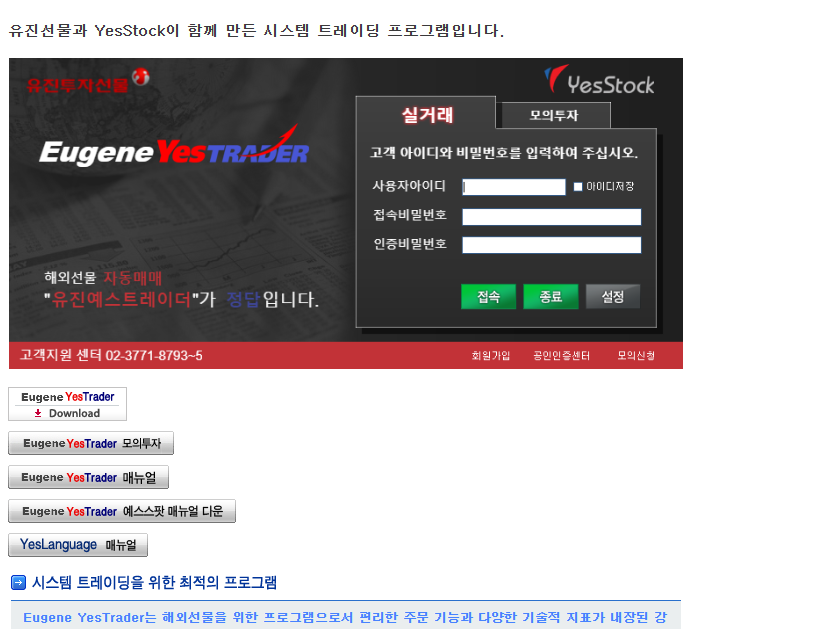 안녕하세요? 예스스탁입니다. 계좌비밀번호를 접속비밀번호에 입력하신게 아닌가 생각됩니다. 로그인 하실 때 로그인 화면에서는 접속비밀번호를 입력하셔야 되므로 접속비밀번호를 확인하셔서 로그인 해보기시 바랍니다. 감사합니다. > yes 님이 쓴 글입니다. > 제목 : 모의 거래 문의 드립니다. > 유진 선물에 그림과 같이 모의 거래를 가입하고 모의거래 비밀 번호 4자리를 받아 입력하면... 비밀번호가 틀린다고 나옵니다... 방법이 있는지요?