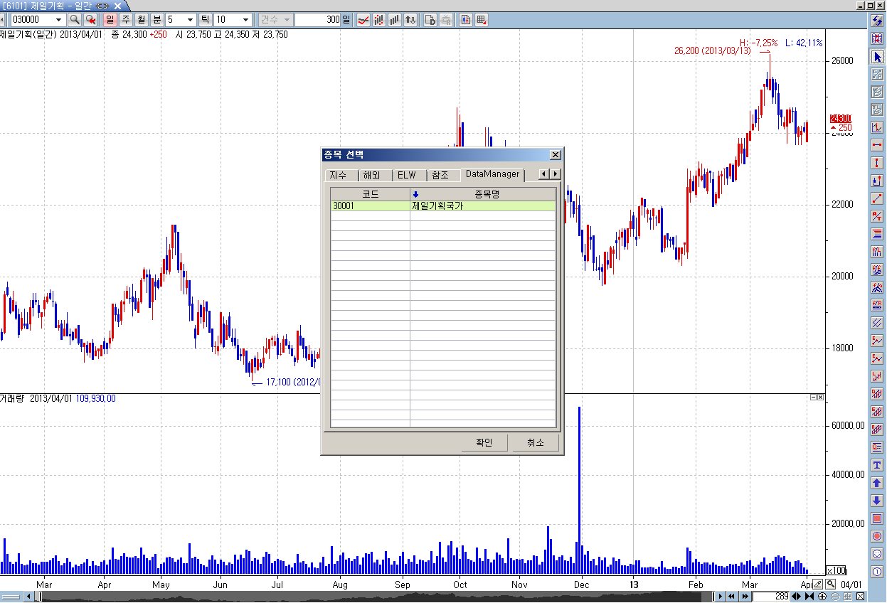 데이터매니저의 종목추가 시간을 한국시간으로 변경해서 사용하는 방법도 있지만,