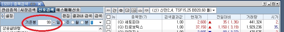 > 제목 : 종목검색(3201)창에서 궁금한게 있습니다.