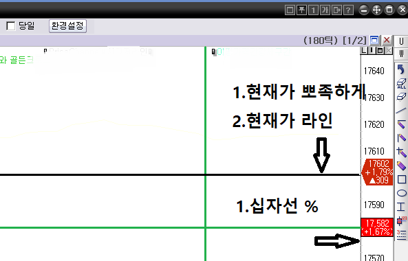1.십자선: 십자선 옆에 가격밑에 % 도 나오게해주세요