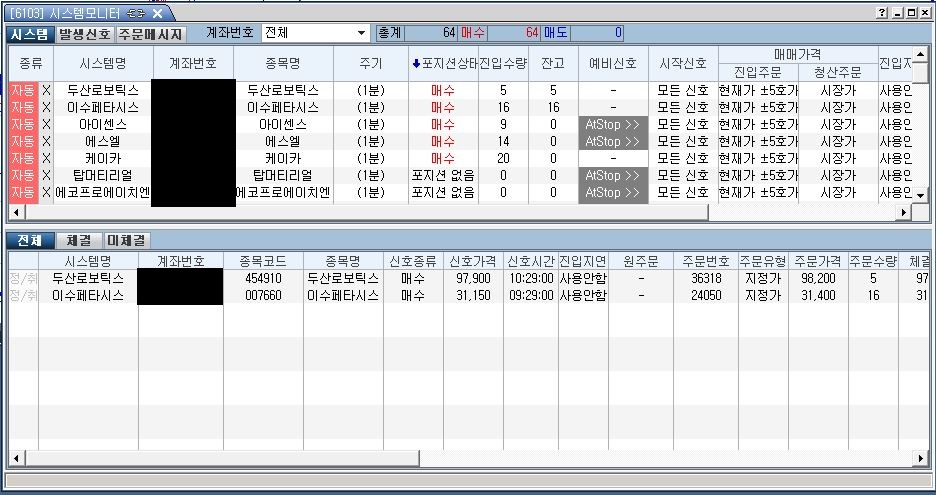 장이 시작하지 않았음에도 불구하고 직전 영업일에 자기 마음대로 매수신호가 떠서 가매수됨(※ 케이카, 아이센스, 에스엘 모두 동일한 현상)