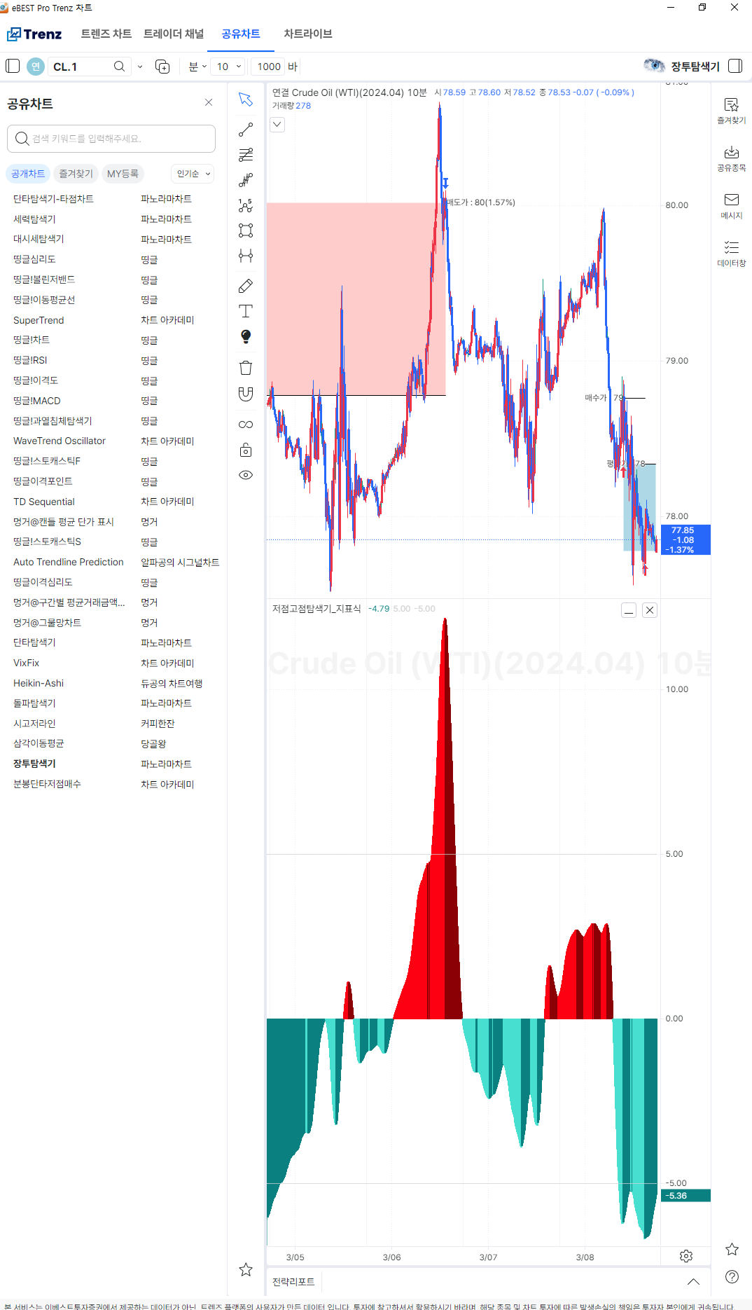 또는 trenz차트의 공유차트의 지표를 (예를 들어 띵글!MACD 등)