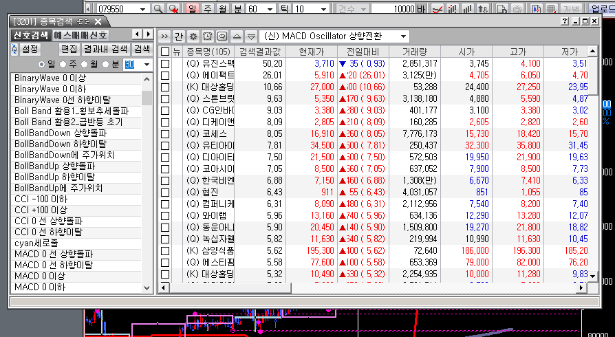 안녕하세요? 예스스탁입니다. 예스매매신호 탭 옆에 좌우 버튼 클릭하시면 관심종목 탭이 나옵니다. 감사합니다. > anj 님이 쓴 글입니다. > 제목 : 종목검색탭에 관심종목탭이 없어요. > 종목검색탭에 관심종목탭이 없어요. 파일첨부할게요. 저렇게 뜨거든요