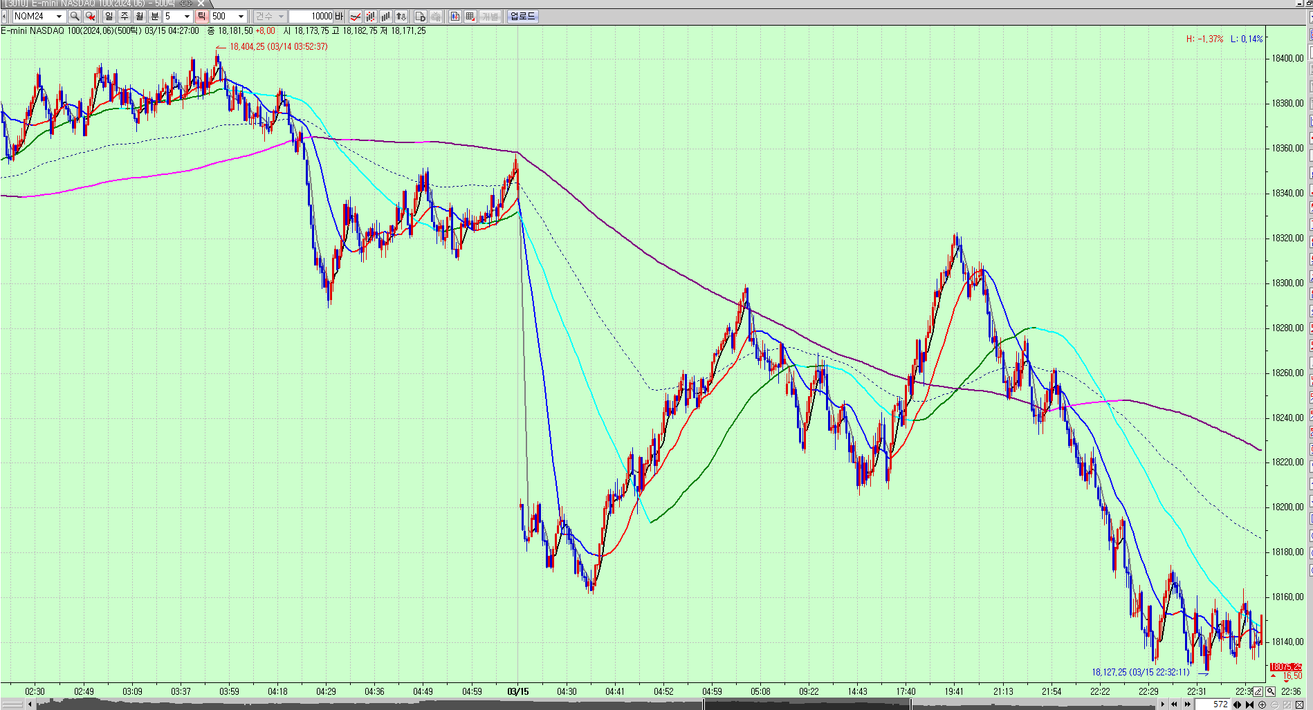 > 틱차트에서 900틱은 괜찮은데 500틱 이하정도 에선 통째로 시간대가 아예 끊겨서 안나옵니다.